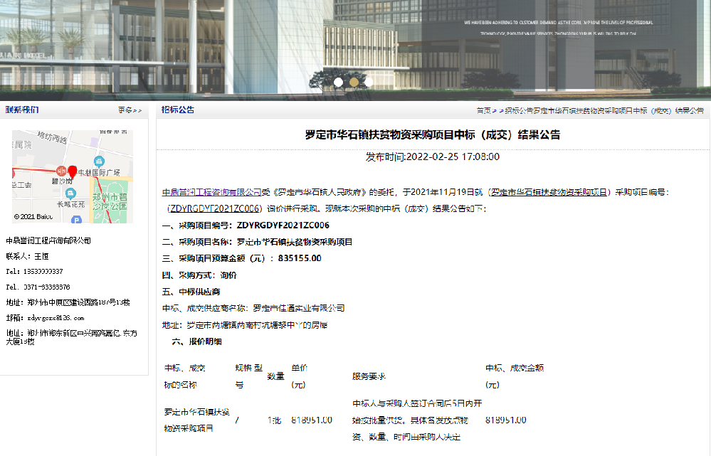 鼎點娛樂工程咨詢有限公司受《羅定市華石鎮(zhèn)人民政府》的委托,于2021年11月19日就(羅定市華石鎮(zhèn)扶貧物資采購項目)采購項目編號:(ZDYRGDYF2021ZC006)詢價進行采購。現(xiàn)就本次采購的中標(成交)結(jié)果公告如下:一、采購項目編號:ZDYRGDYF2021ZC006二、采購項目名稱:羅定市華石鎮(zhèn)扶貧物資采購項目三、采購項目預(yù)算金額([詳細]